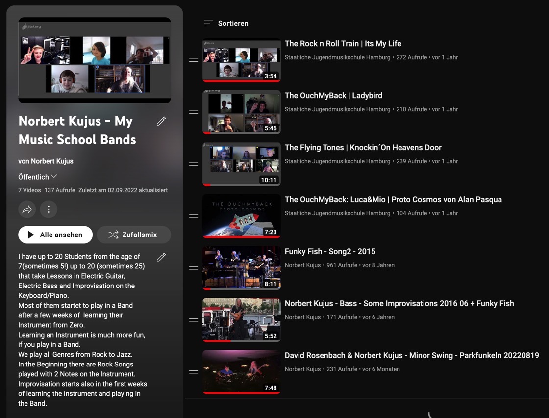 Hier gibt es eine Playlist mit einigen Videos meiner ehemaligen Musikschulbands 2020-2023